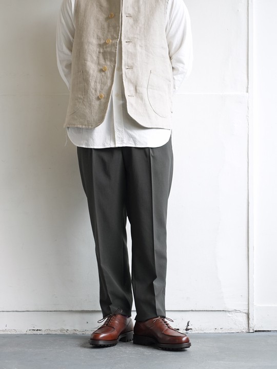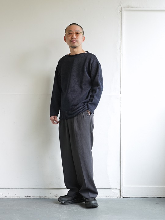 最近ごふさただったゆったりシルエットのパンツ。ドレス工場で生産するFDならではの丁寧な縫製と、素材感がマッチしてルーズになりません。これなら大人が穿けるイージーパンツとしてご愛用いただけると思います。夏場なんかこの緩さ最高ですよね。