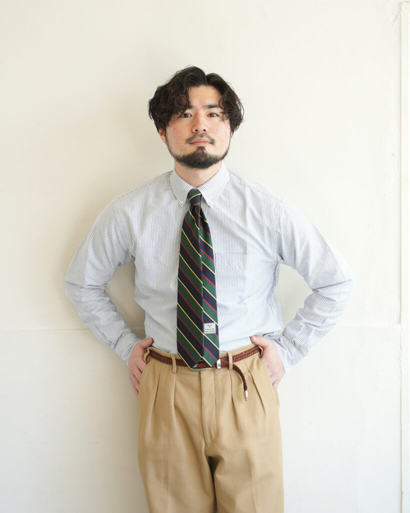 ストライプのピッチや色使いのおかげでか、どこか堅苦しさがなく、普段着にも自然と馴染むのが魅力です。