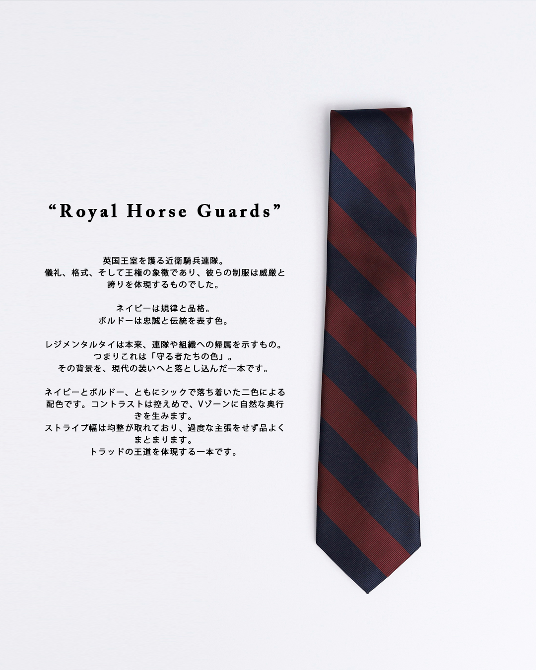 ウエスタンのディティールをあまり邪魔しない、2色使いの『Royal Horse Guards』と合わせてみました。