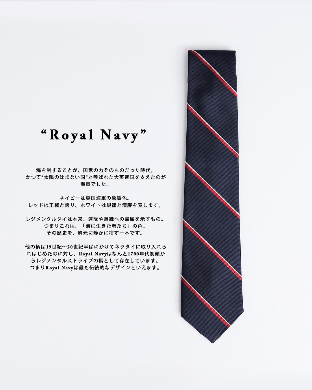 NAVY ROOTS(ネイビールーツ)のネクタイで、そんな装いを楽しんでみてはいかがでしょうか?