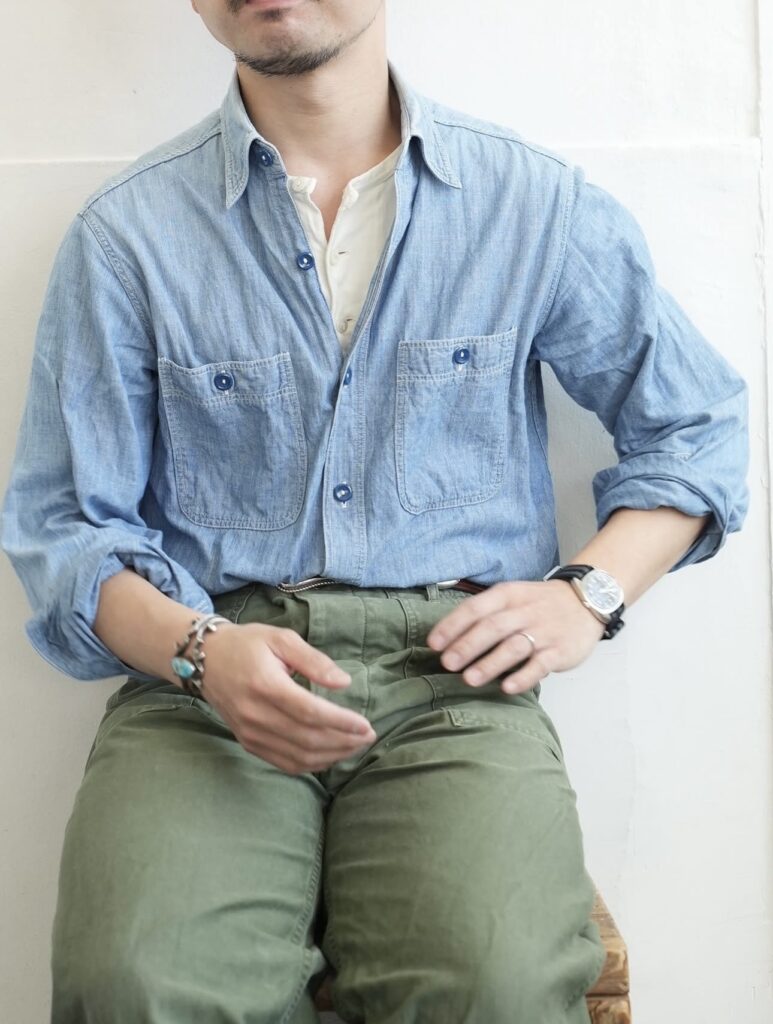 元々ワークウェアであるシャンブレーの“外側”に対して、ヘンリーは“内側”の服。
