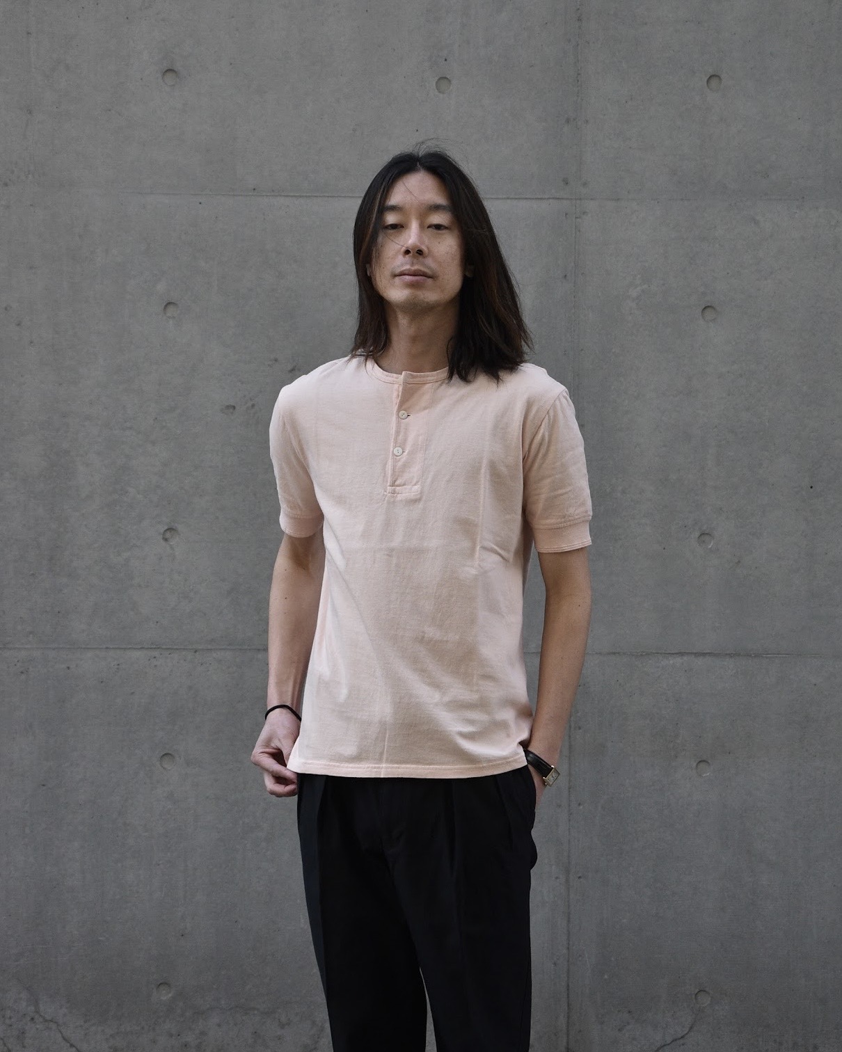 つまりヘンリーネックは、元来“見せるための服”ではなく、身体の内側に寄り添う衣服でした。