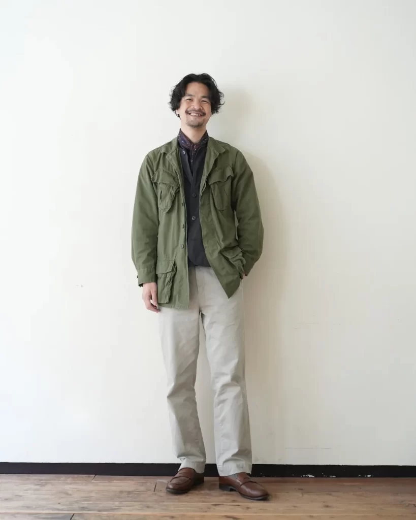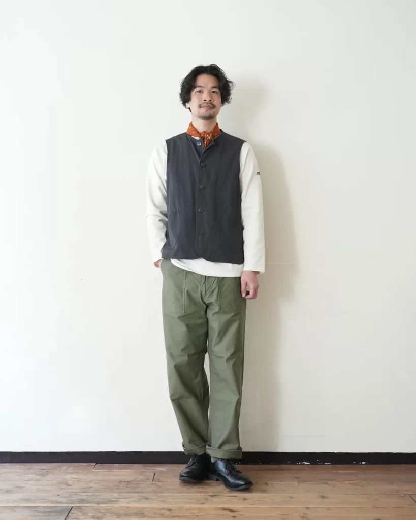 私自身、経年変化したミリタリージャケットやワークジャケットなどのインナーに着る事が多く、
