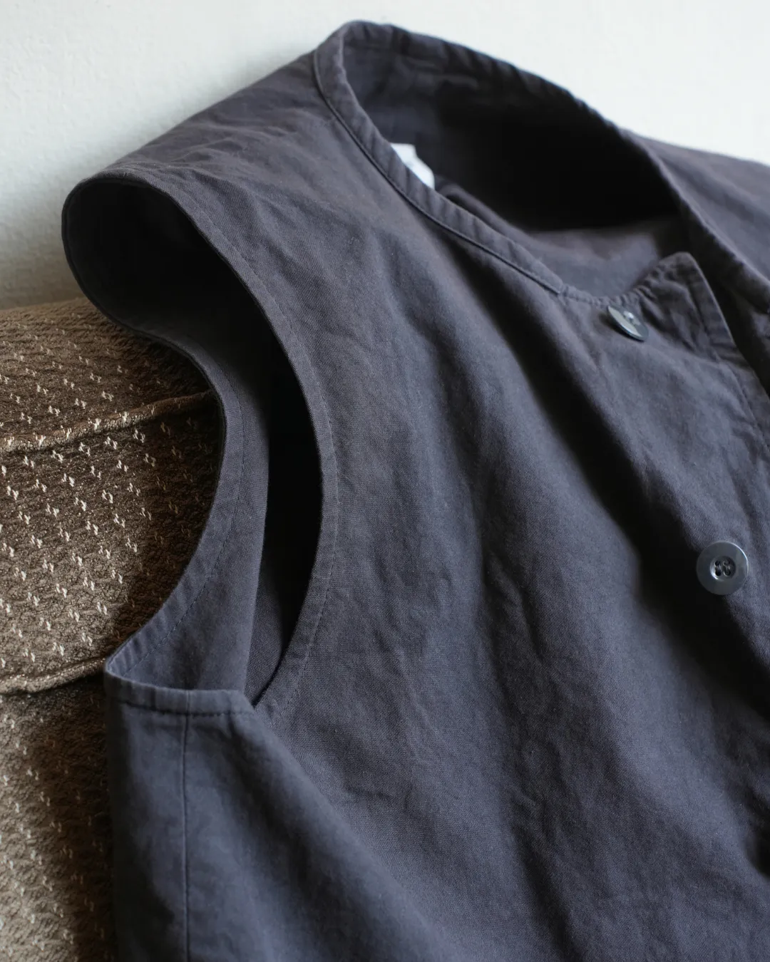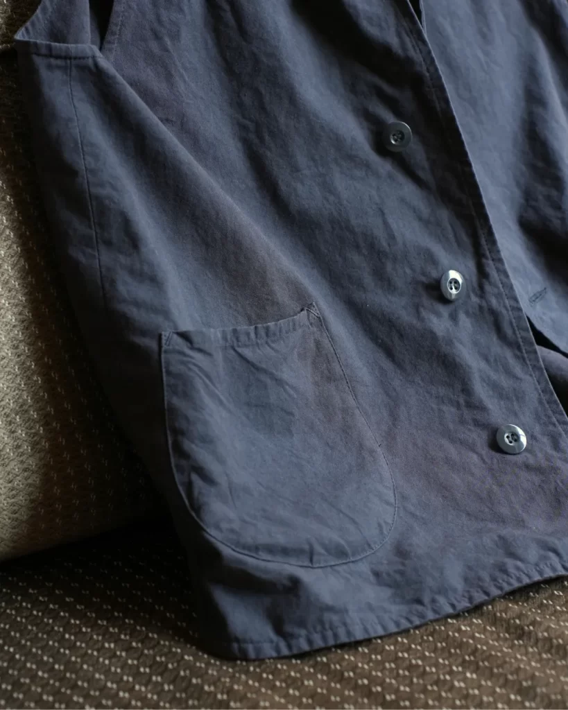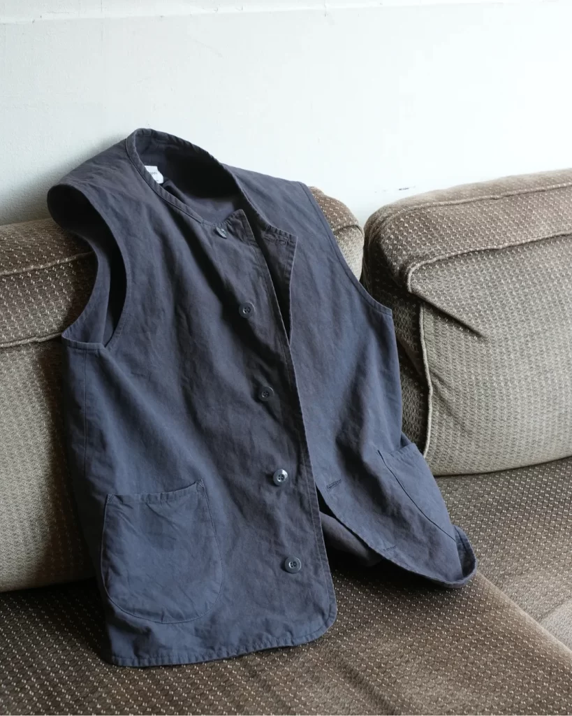 このベストも同じように経年変化が楽しめたらいいのになと思ったのがこの素材を使ったきっかけ。