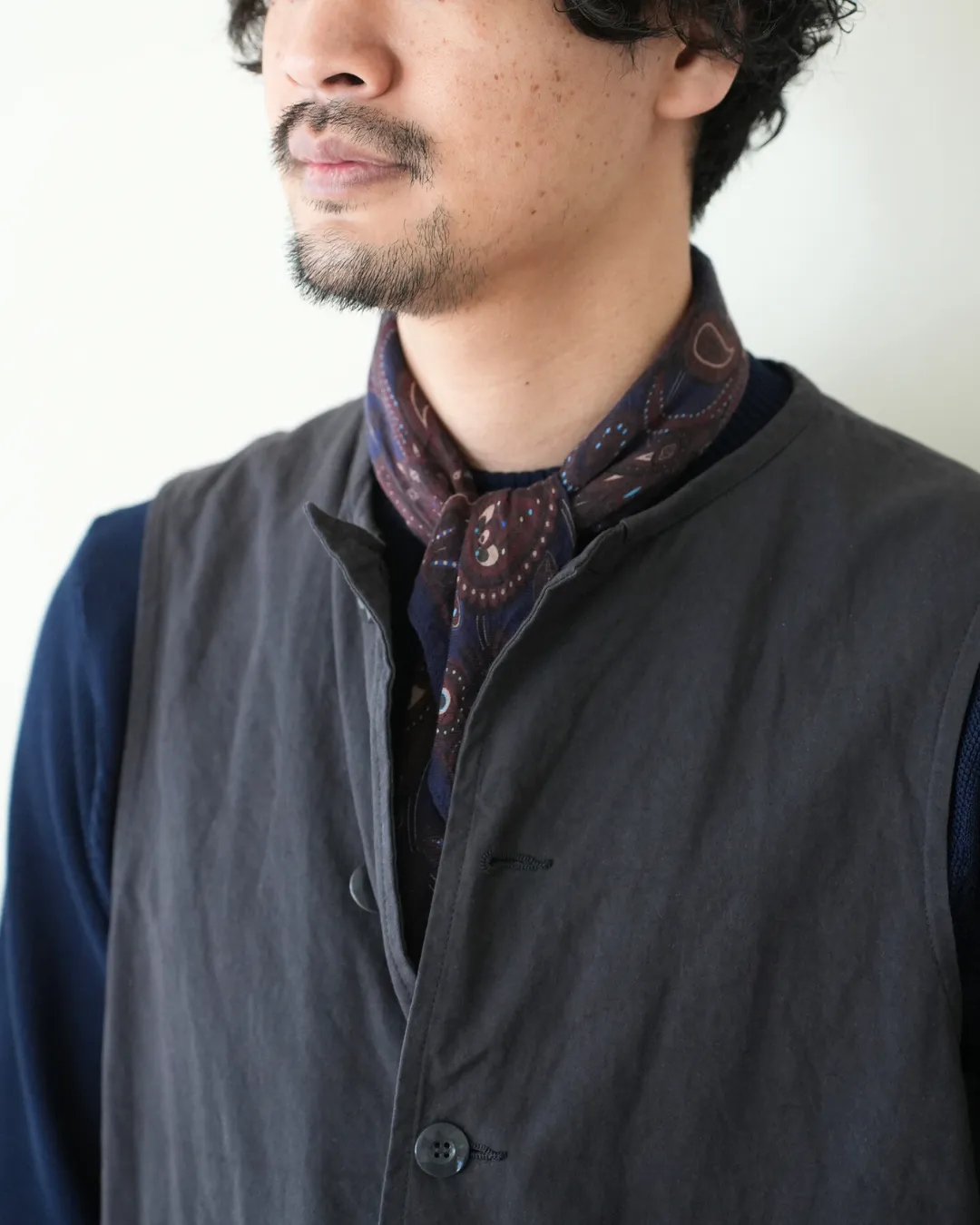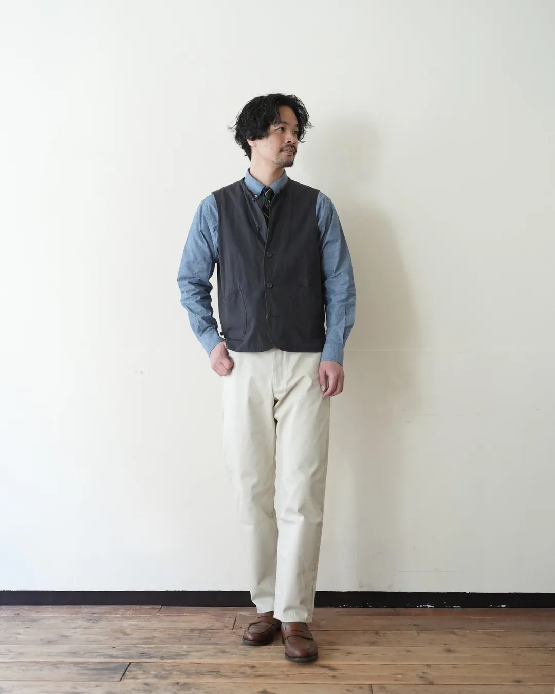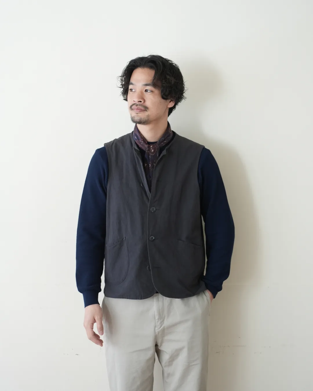 このベストも同じように経年変化が楽しめたらいいのになと思ったのがこの素材を使ったきっかけ。