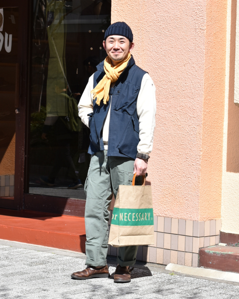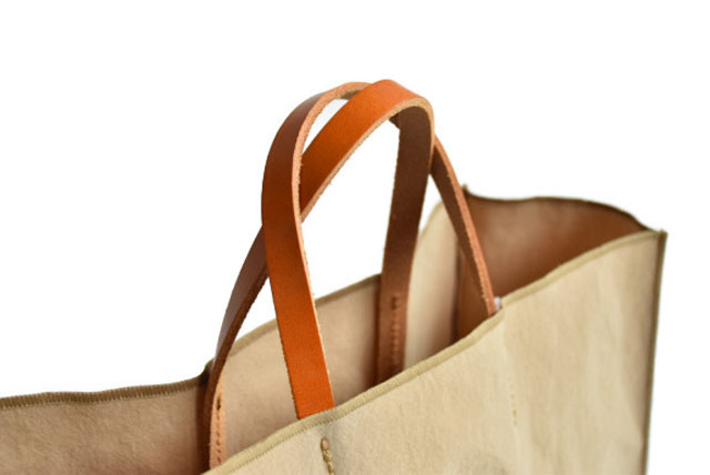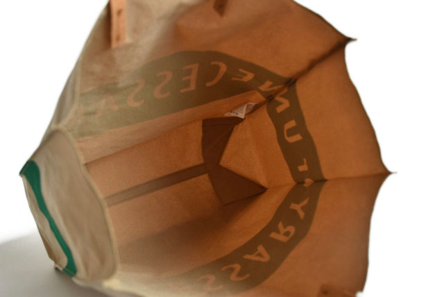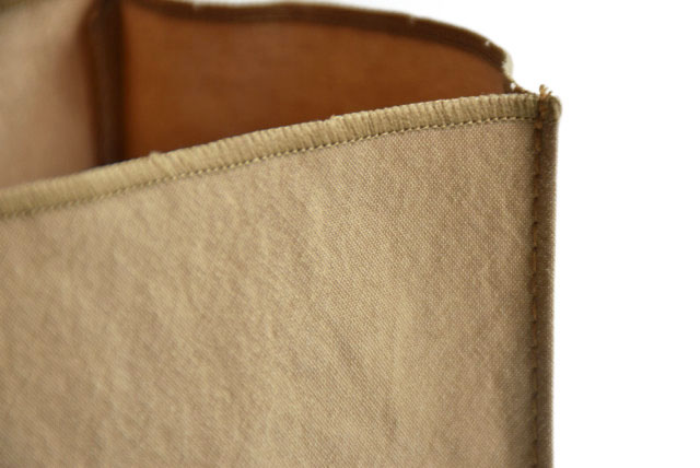 紙袋に見えるのはナチュラルなシワ感がそうさせてます。素材はナイロンで塩縮加工と言う特殊な加工を施したもの。