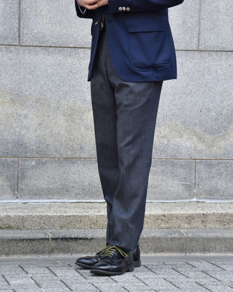股上深めのシルエットですので、短丈のジャケットにも良く合います。