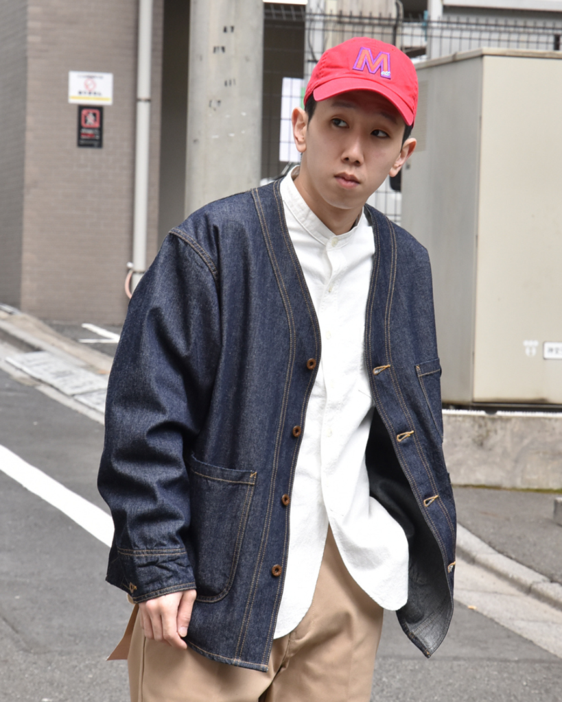 そして渋谷・大阪展開限定のAUTHEN。こちらはジップアップタイプのトラッカーとは少し異なったアプローチのジャケットです。シンプルながらもデザイン性のある前立てが目を惹きます。