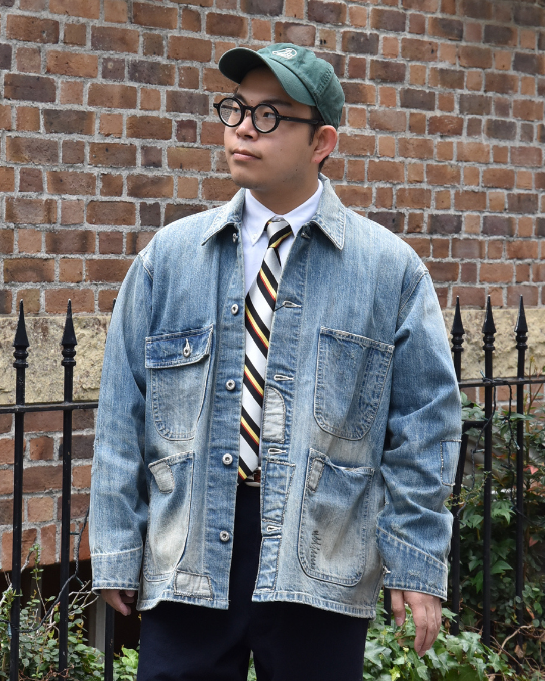 BDシャツにレジメンタルをしっかり閉めて、ガサっとカバーオールを羽織る。かっこいいじゃあないですか。