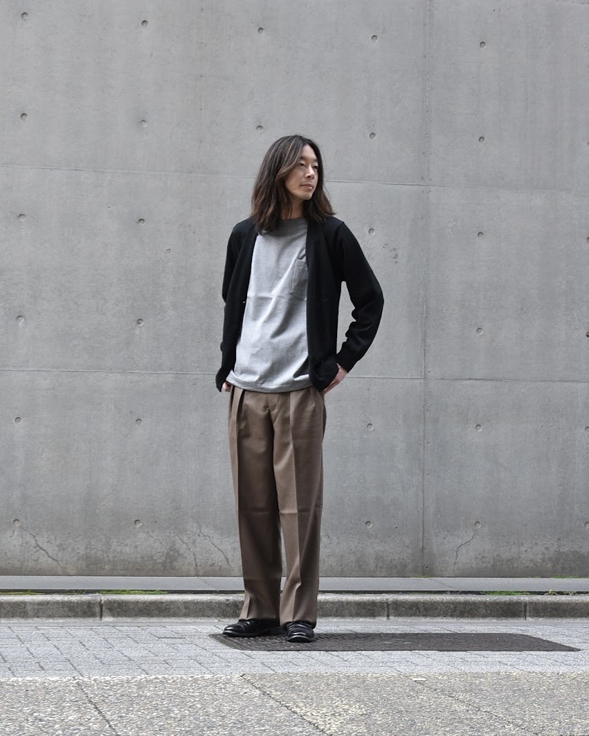 フロントはジャケットライクな2ボタン仕様。加えてハンドポケットも備えており、軽い羽織りとしての実用性もしっかり確保されています。