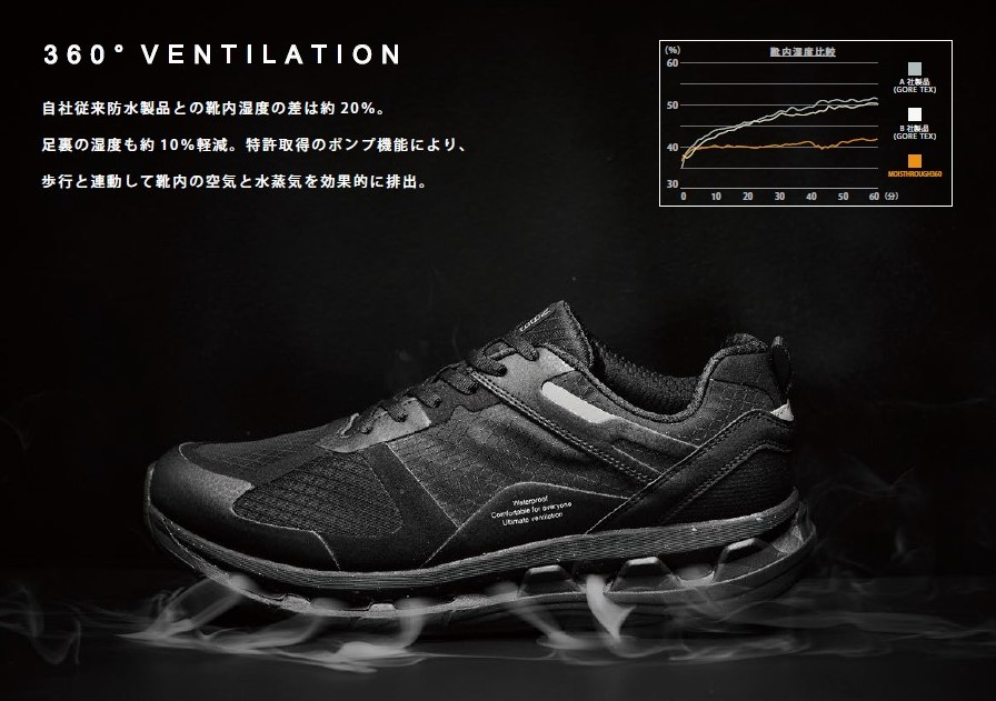 ●シューズ Moisthrough360(モイスルー360) サイズ:26.5cm カラー:ブラック ¥28,600-