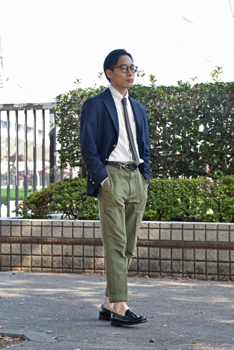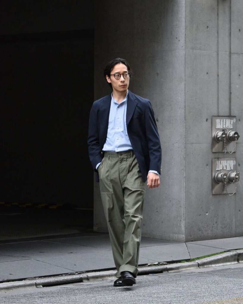 ベイカーパンツも紺ブレとは相性抜群ですよね。