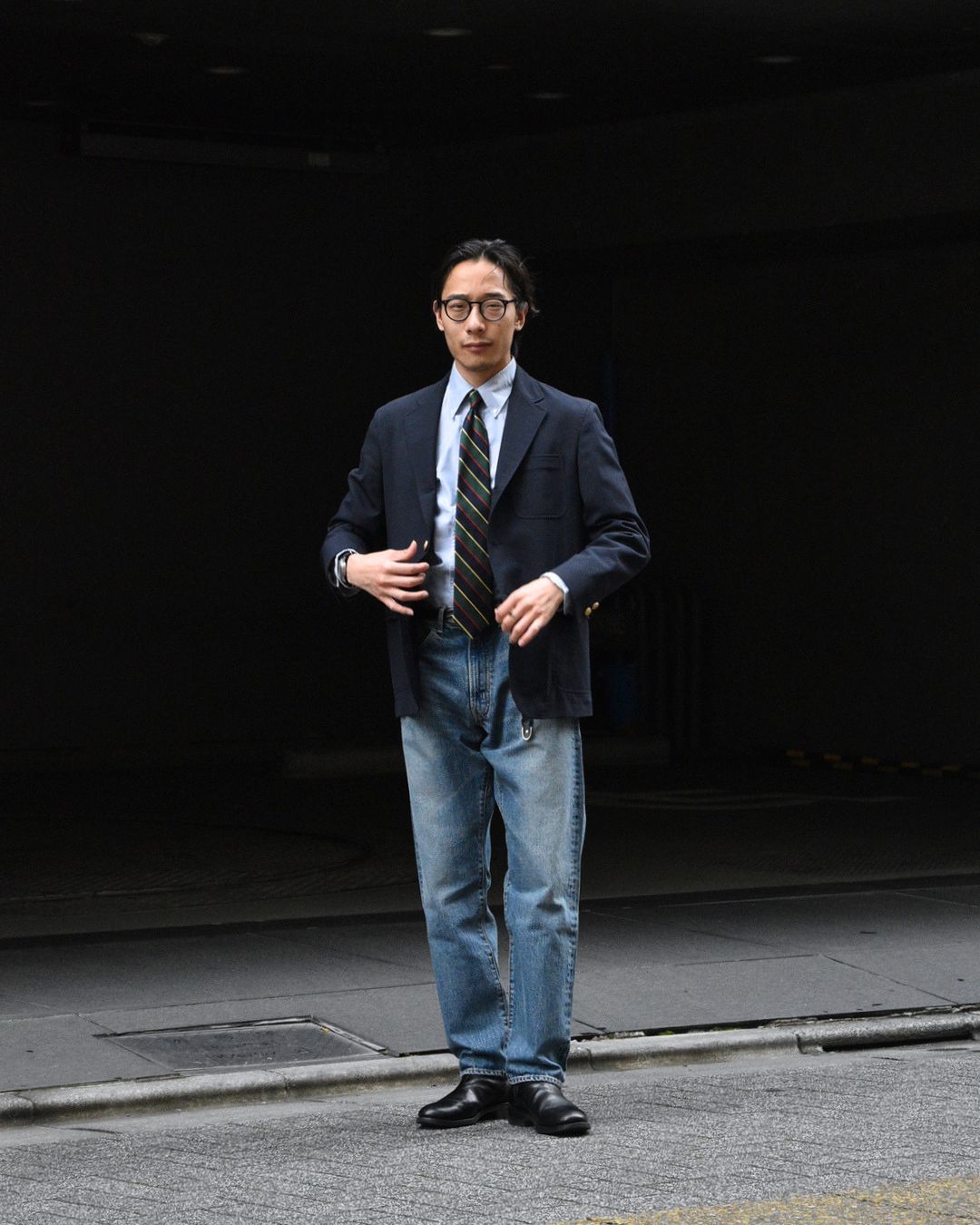 フェードしたジーパンを持ってきてもらうと、程良くカジュアルに抜けてくれると思います。