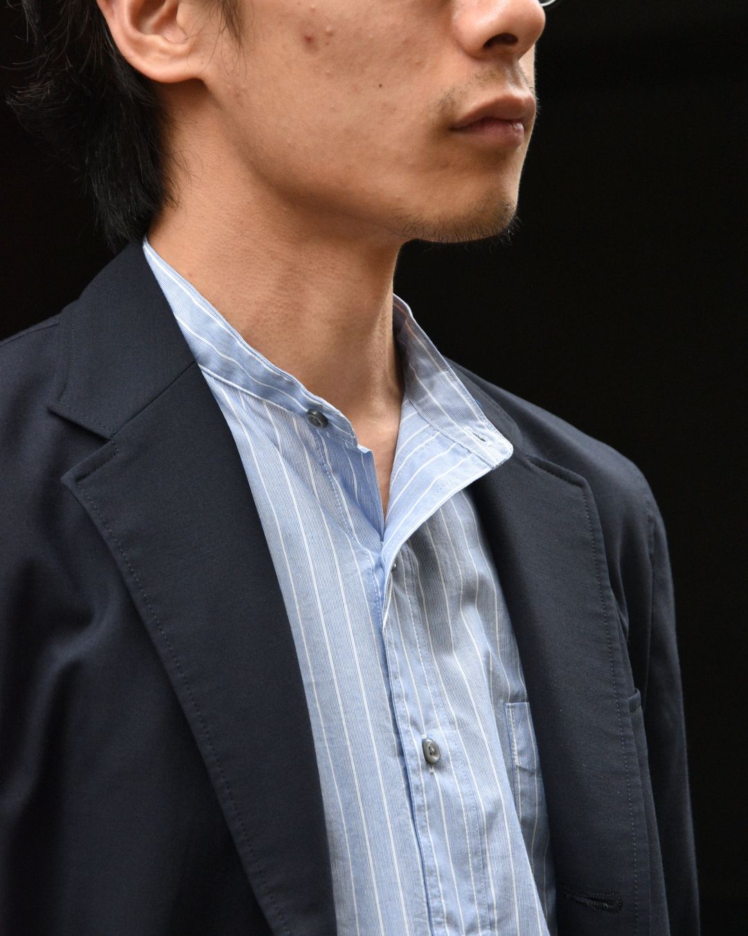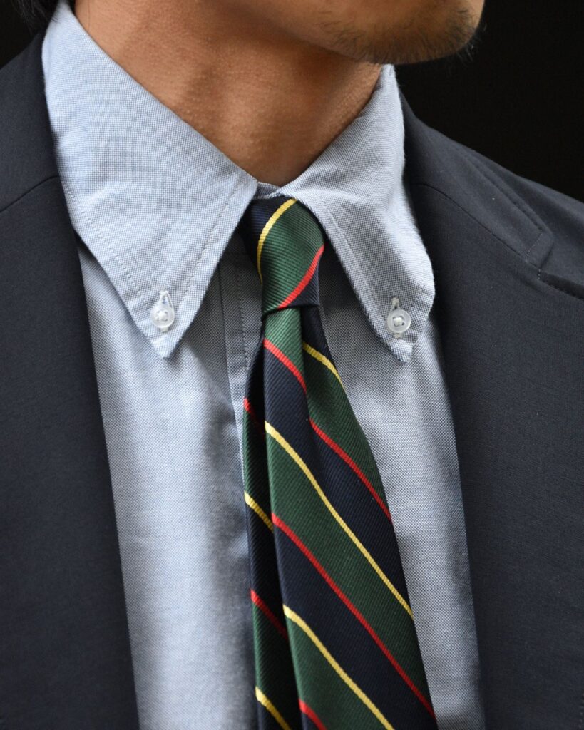 第一ボタンを開けた時、BDシャツよりも開放的に見えるので、春夏の装いには良い塩梅だと思っています。