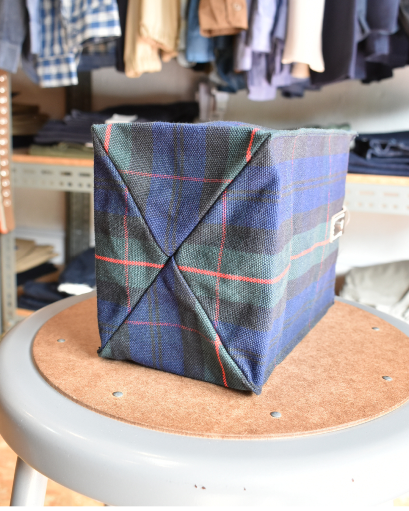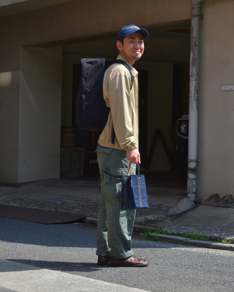 生地はオリジナルで作成しており、先染めキャンバスと呼ばれるものでして日焼けや色落ちに強く、堅牢度の高い生地。それなりに厚みもあってコシもございますからバッグが自立します。