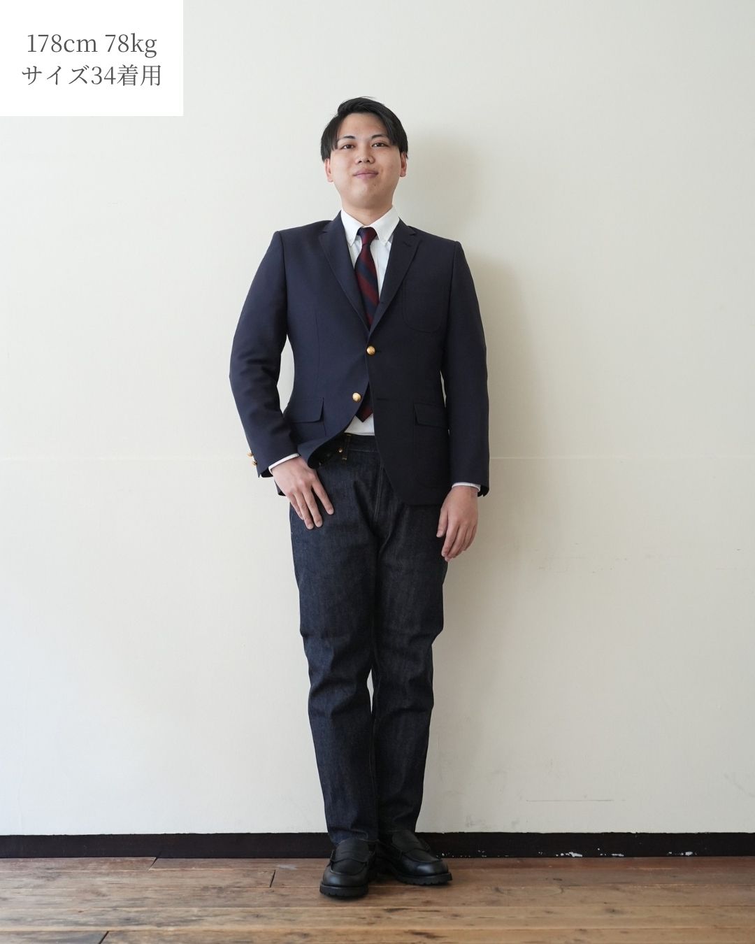 ボタンダウンシャツに紺ブレザー、足元はローファー。そんな知的で端正な着こなしによく似合うムードを備えたデニムです。