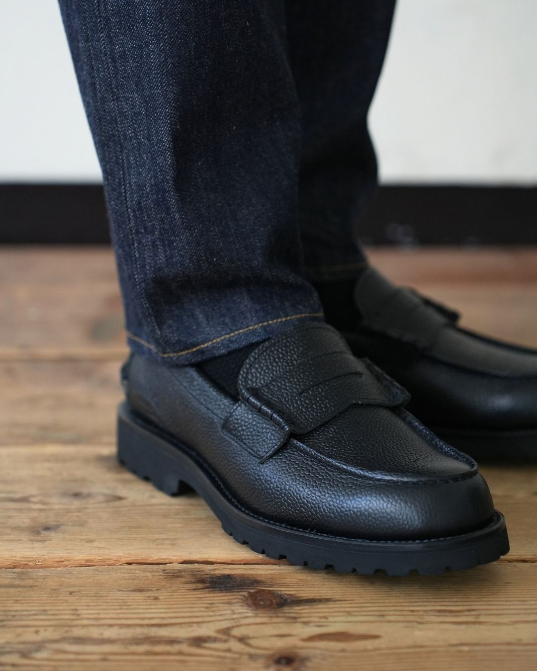 ワンウォッシュ済ですが、お洗濯によってさらに1-2cmの縮みが出ます。杉本の場合、ローファーを穿いたとき軽く靴下が見えるくらいの丈感になります。