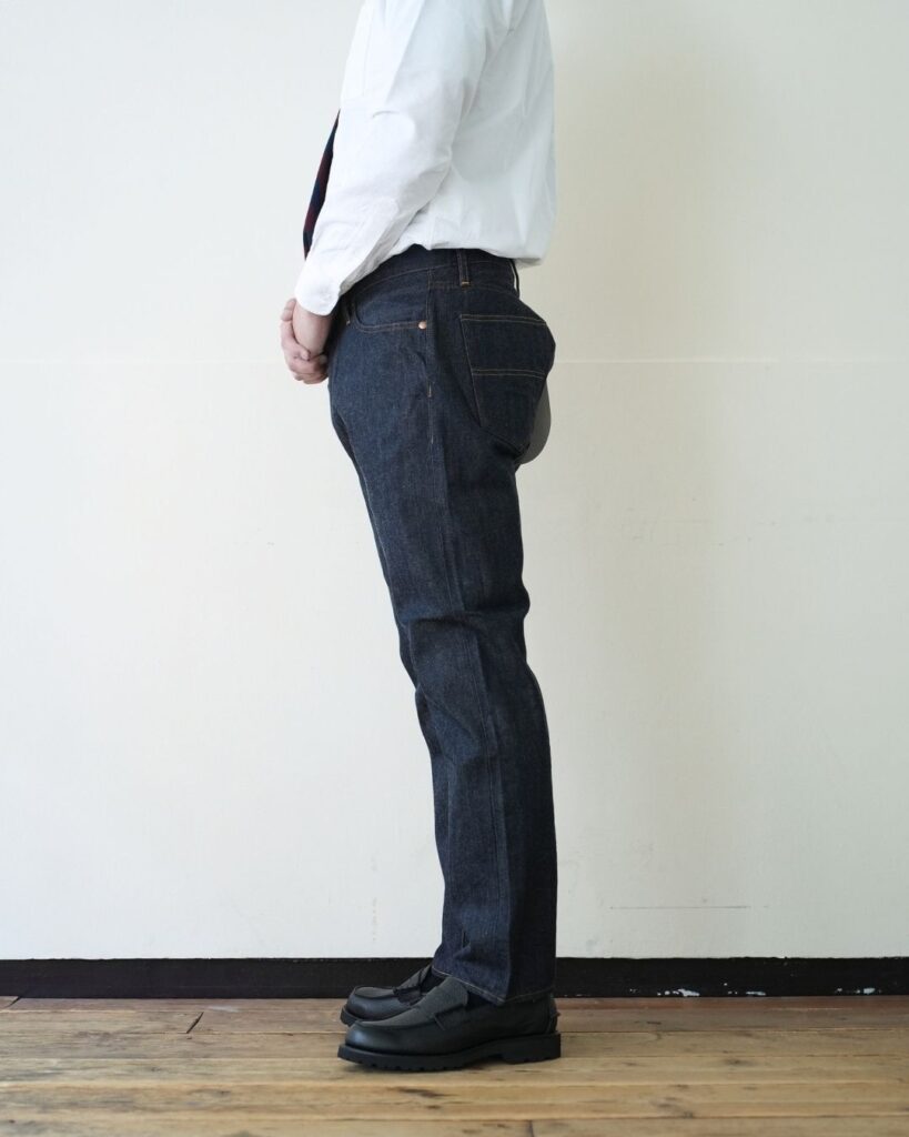 細身ではありますが、ただ細いだけではなく、落ち着いた印象で穿けるのがこのモデルの良さです。