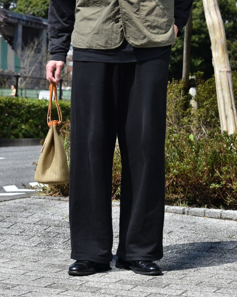 革靴でキュッと締めてあげると、スウェットパンツでも少し上品な印象に。