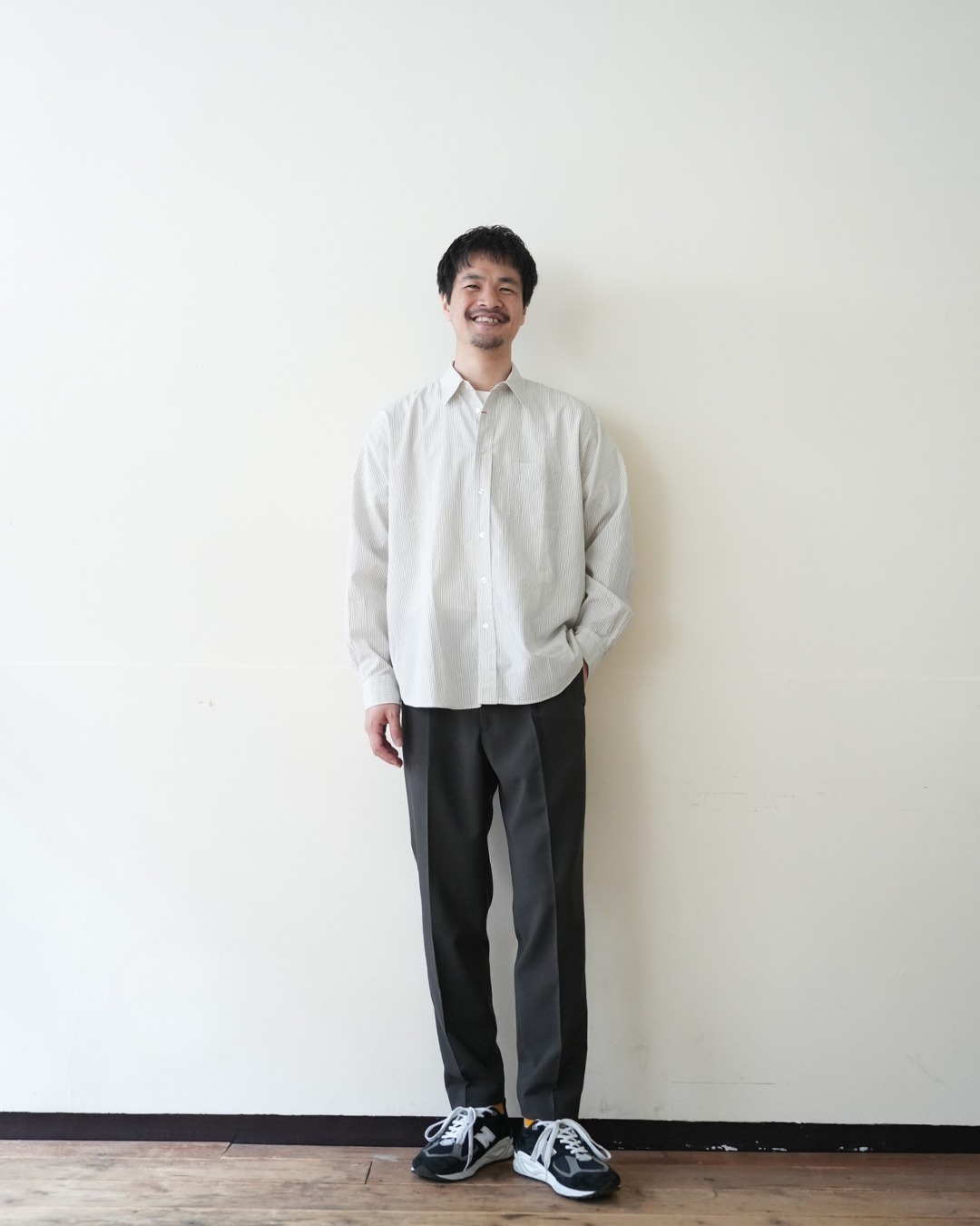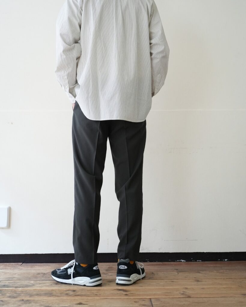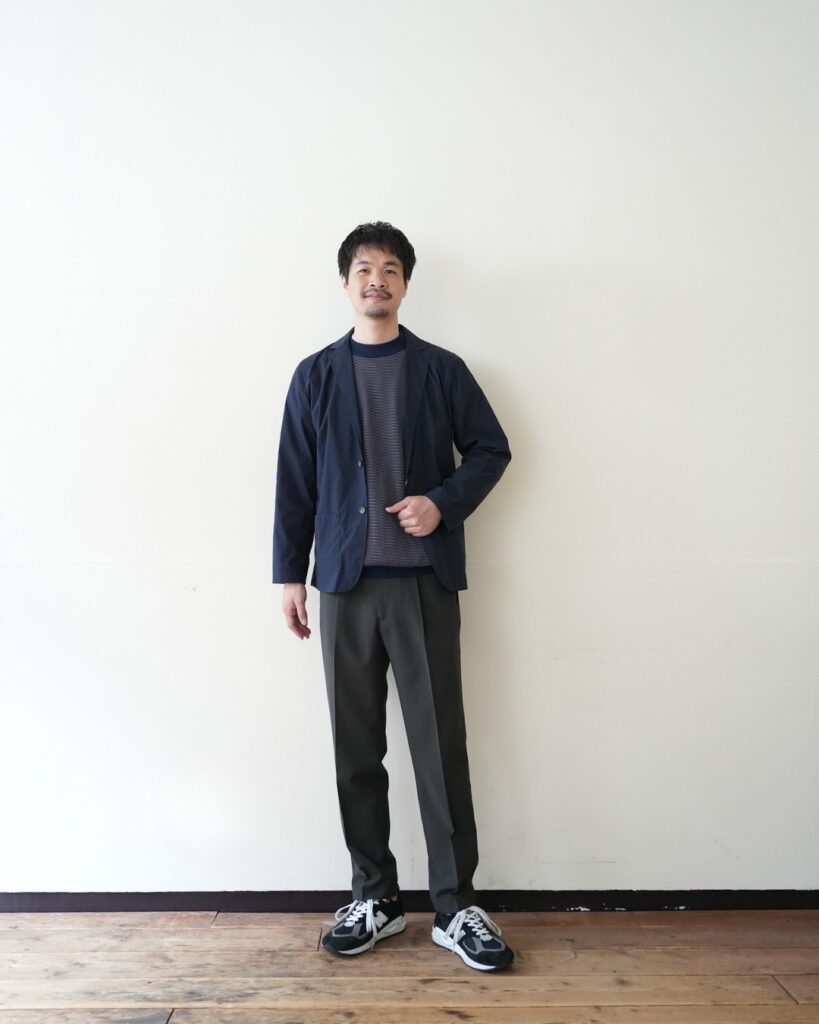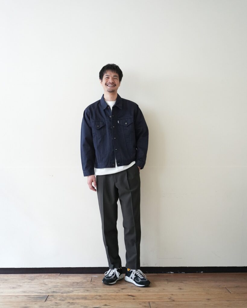 ジャケットを合わせたスタイルから、トラッカージャケットを合わせたカジュアルなスタイルまで、大変使い勝手のいい一本となっております。靴も革靴はもちろん、ニューバランスやコンバース、バンズのようなスニーカーと合わせてもいいと思います。もちろん夏場のサンダルも。