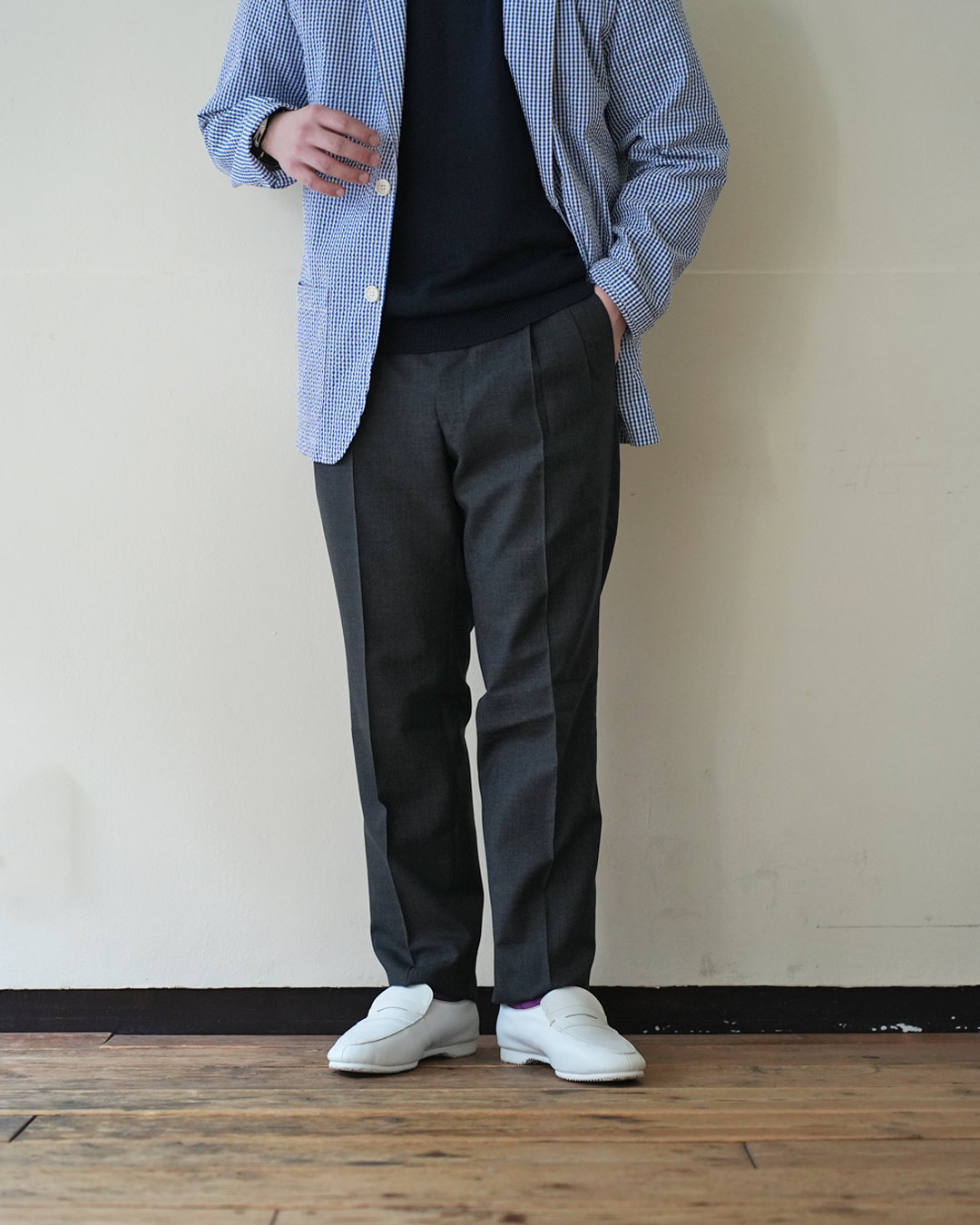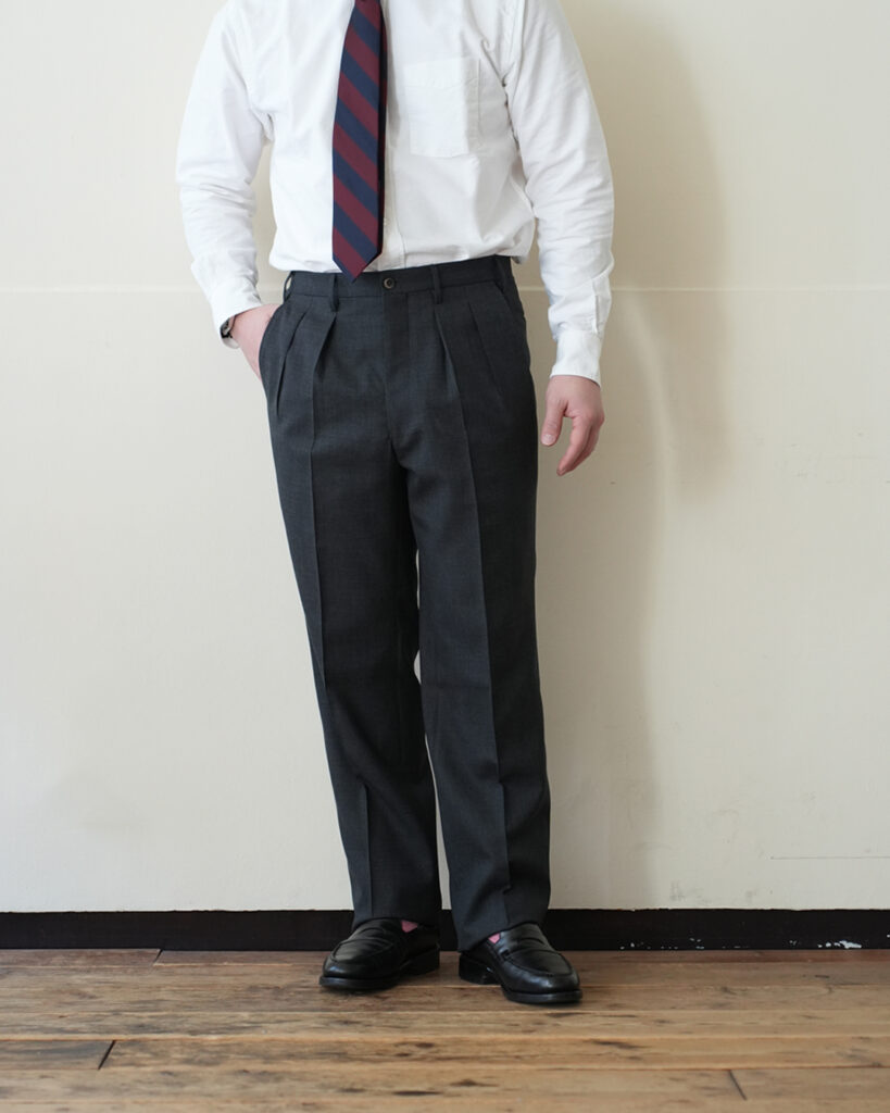 元首相の麻生さんもパンツの裾に鉛を忍ばせていたというほど、スラックスにおいて腰から裾へのラインは重要なんだと感じさせられます。