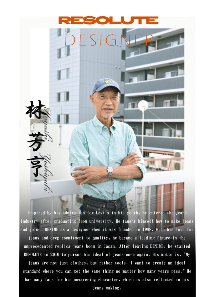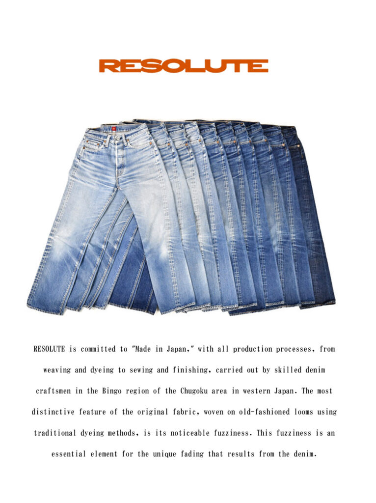 RESOLUTE is a Japanese jeans brand created by Yoshiyuki Hayashi, a leading figure in the jeans fashion industry with over 40 years of experience.