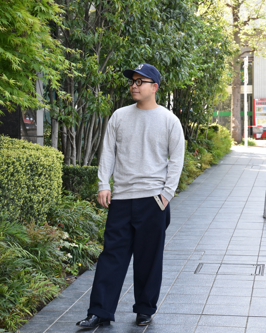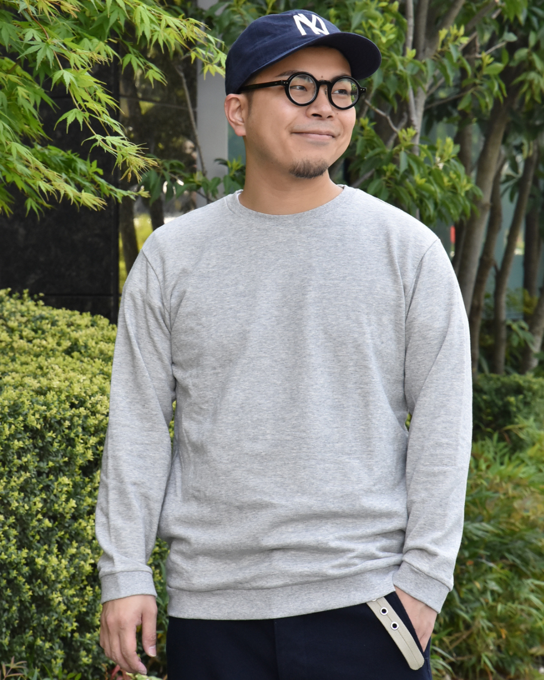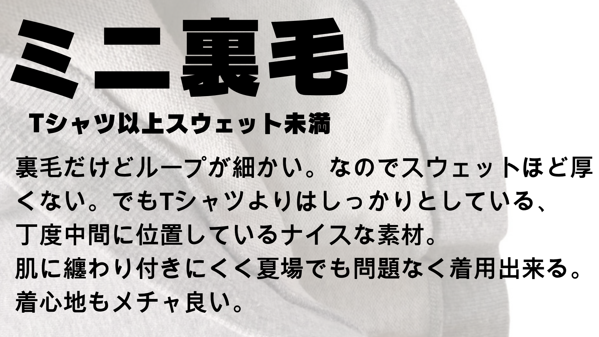 この丁度良さ、がミニ裏毛とも共通しているところで、非常にご相性がよろしくございます。半袖ではまだ肌寒いけど何着りゃいいんだ....ってときに頼れる相棒になりますよ。