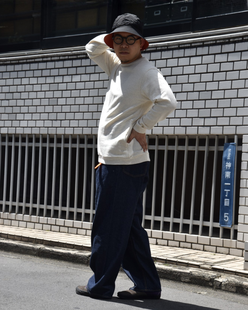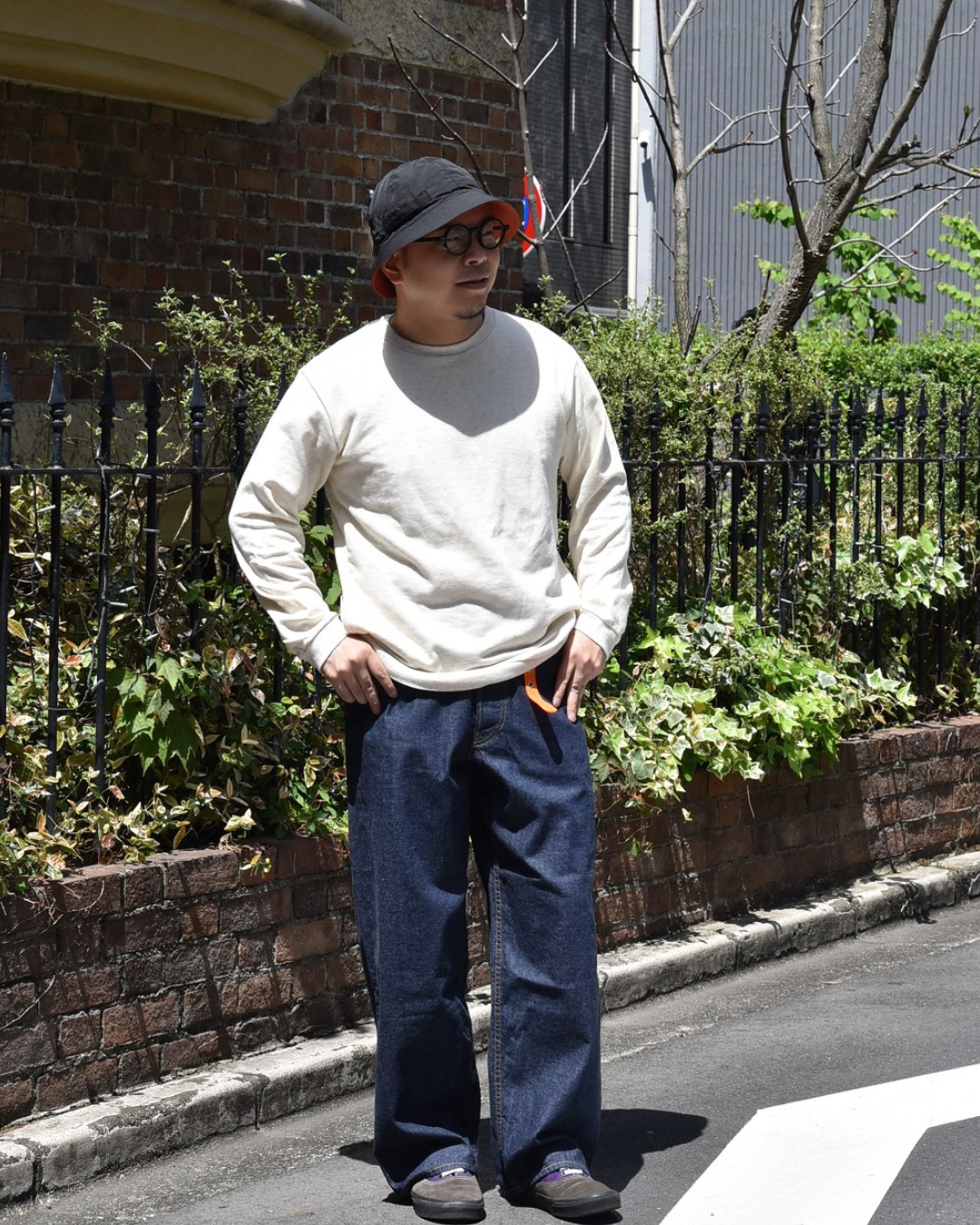 通常、デニムは13-14ozくらいの通年な生地感のモノが多いですが、こちらはそれよりはるかに軽い。ですが薄すぎることもないため、この際の何とも言えない気温や気候が続く時期にピッタリです◎