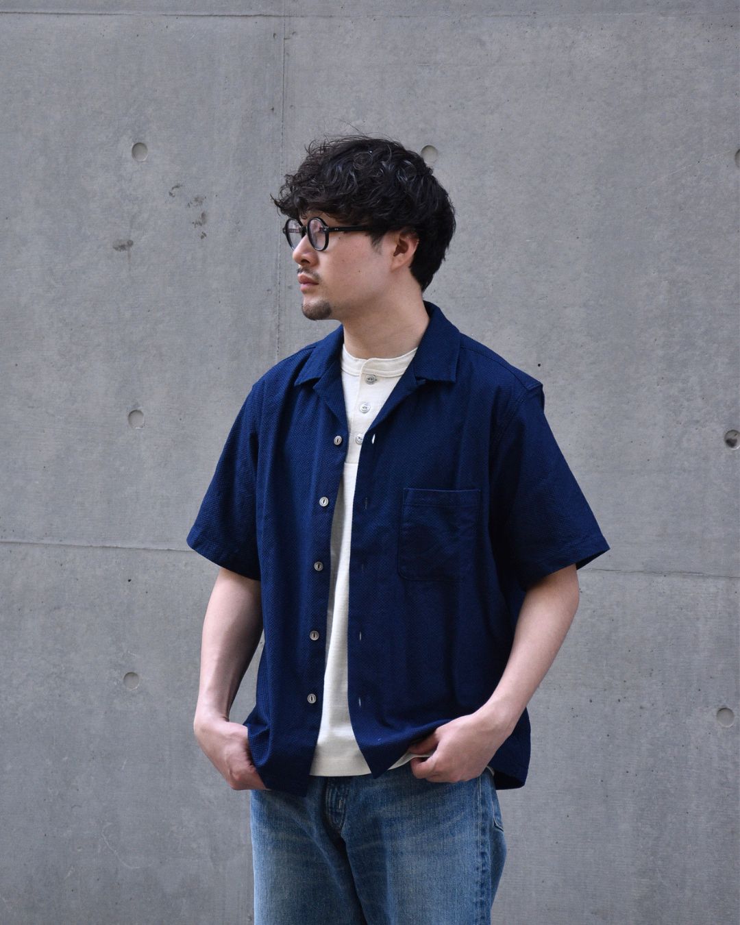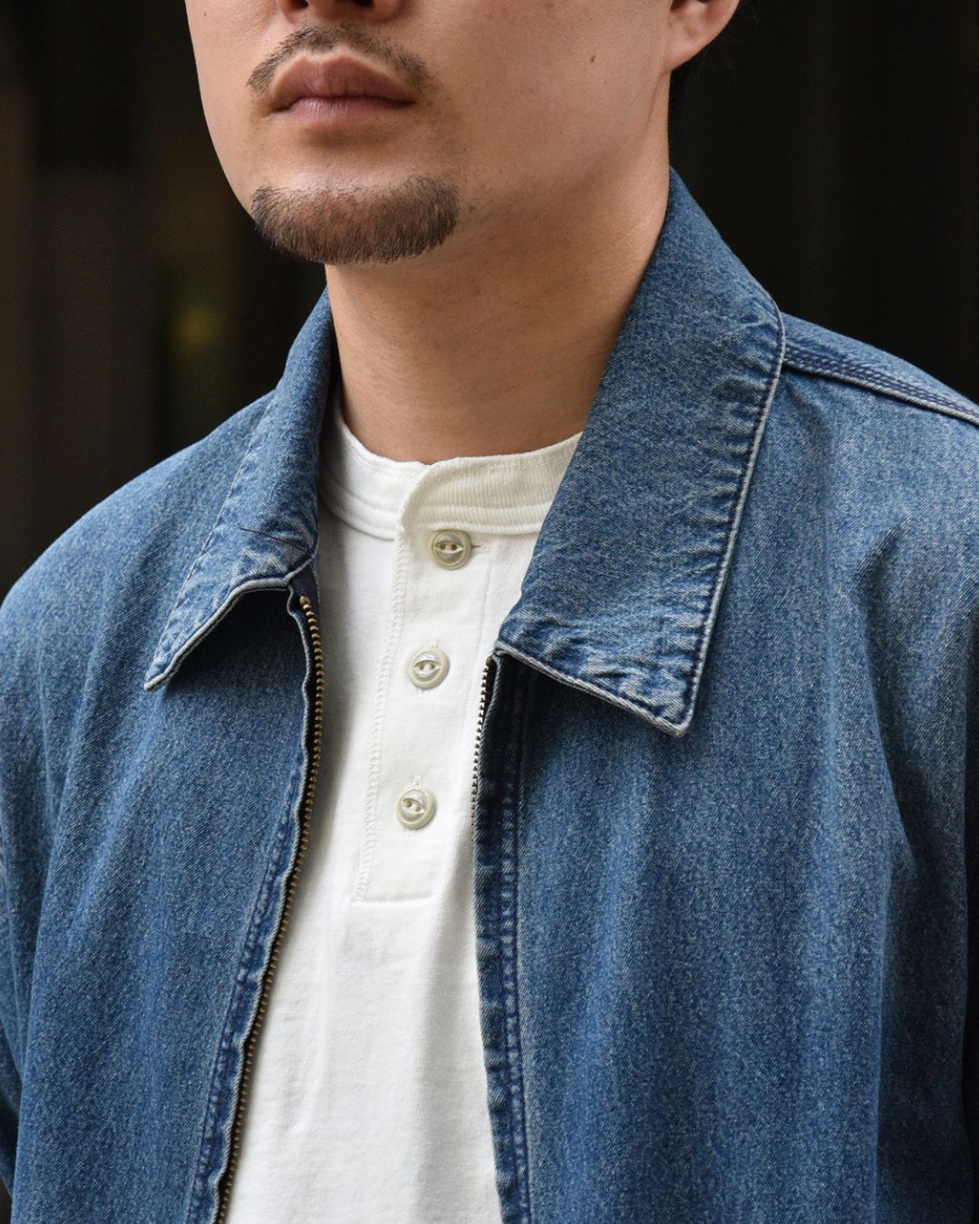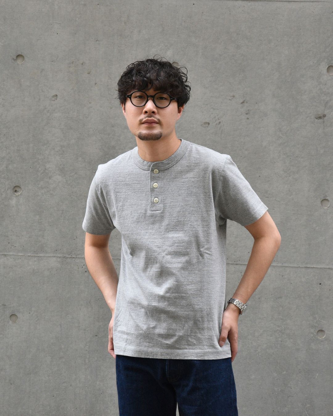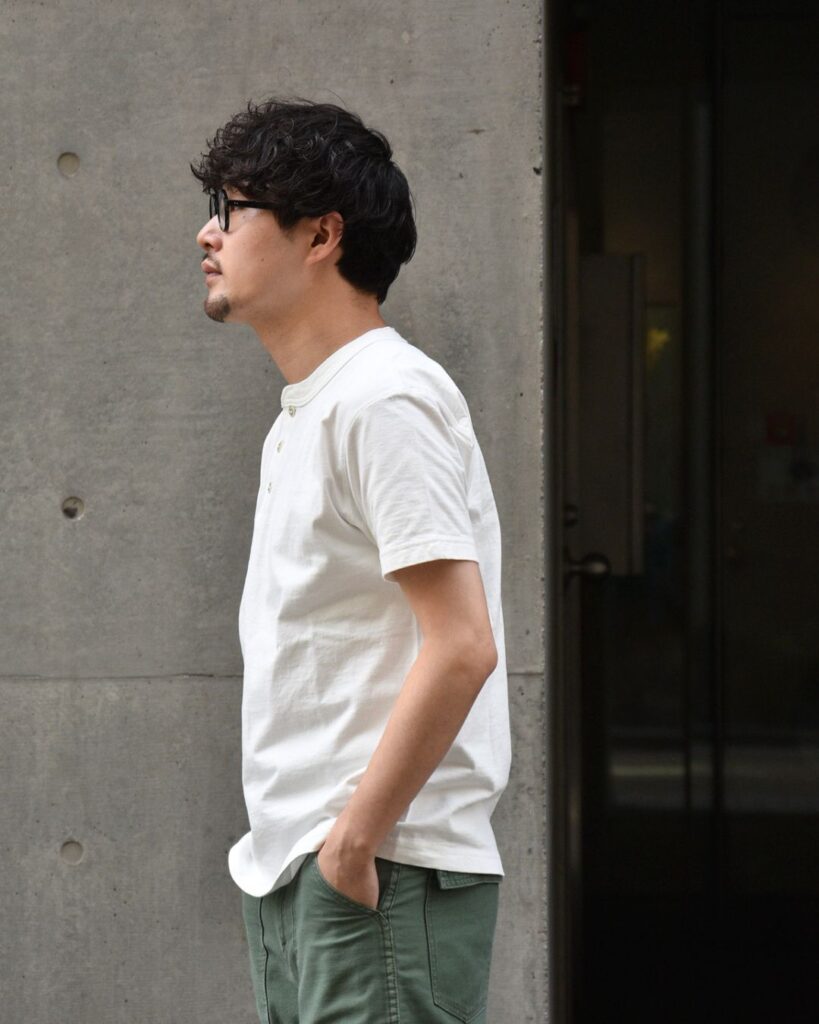 そうすることで一般的に肌着的な素材感のヘンリーネックTを、タフに長く愛用いただけるようにしております。