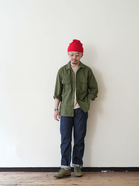新色のラテベージュは、ミリタリー系のアウターに非常に好相性。ほんのり柔らかい色合いは、アースカラーやジーンズのインディゴと合わせてお楽しみください。