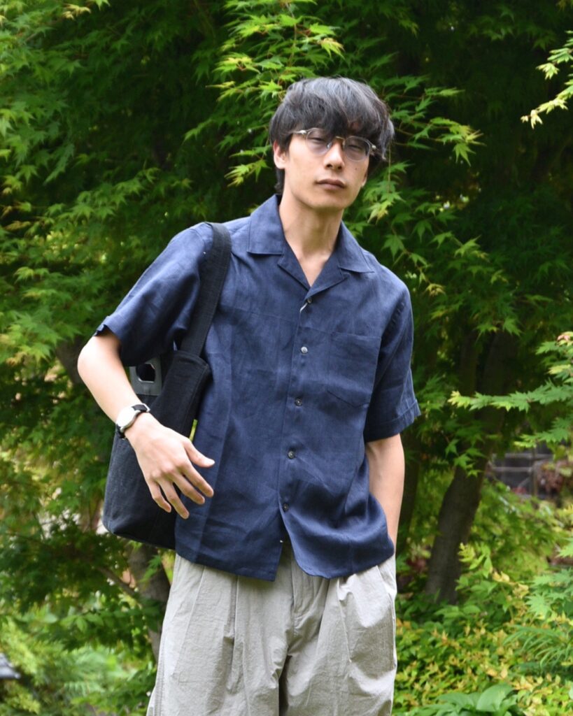 ルーズ過ぎないハリスのオープンカラーシャツだからこそ良いバランスでまとまります。