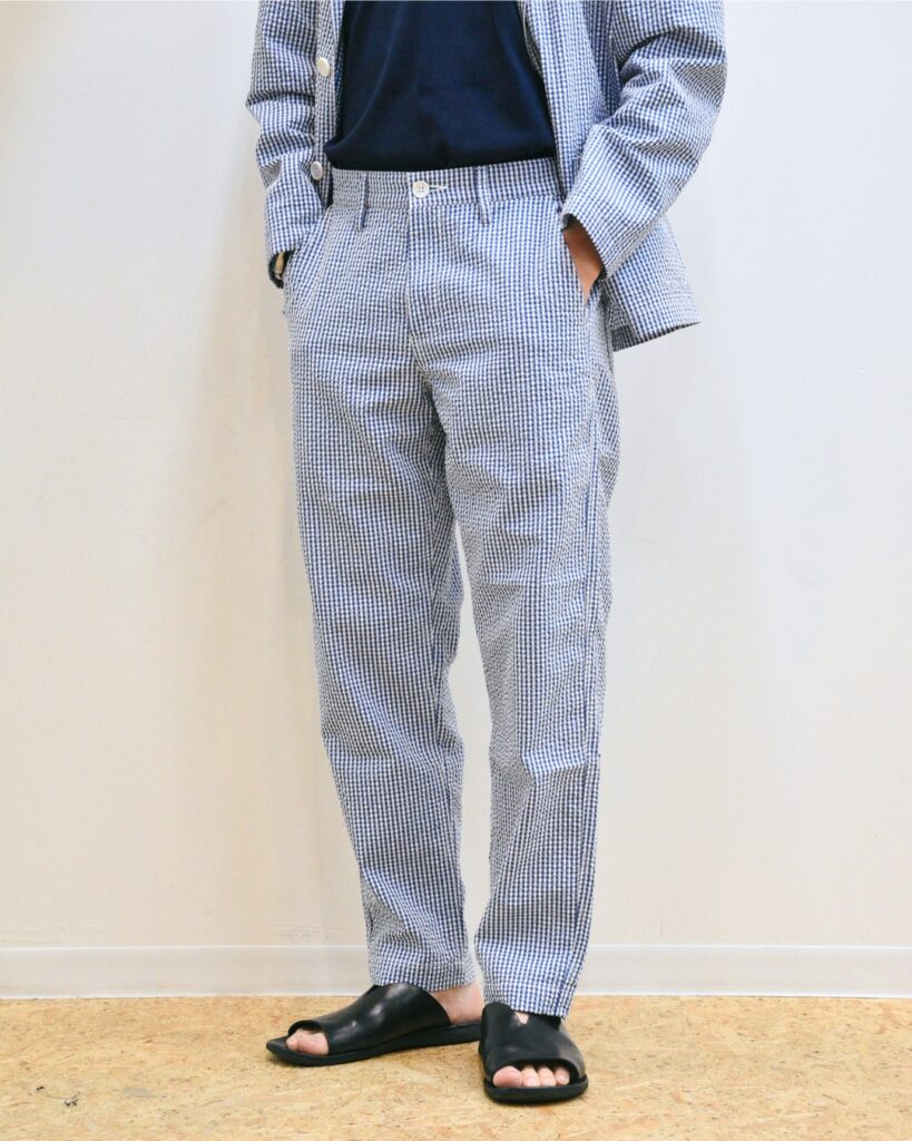 カッチリ見えはしますが、いわゆるジャケパンよりももう一段軽い着用感でお召しいただけます。