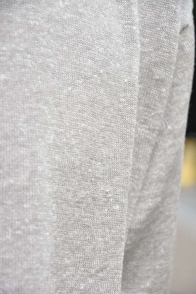 ニットと聞くと、どうしても秋冬のイメージが先行しがちですが、素材と編みを選べば、夏にこそ快適に着られる一着になります。