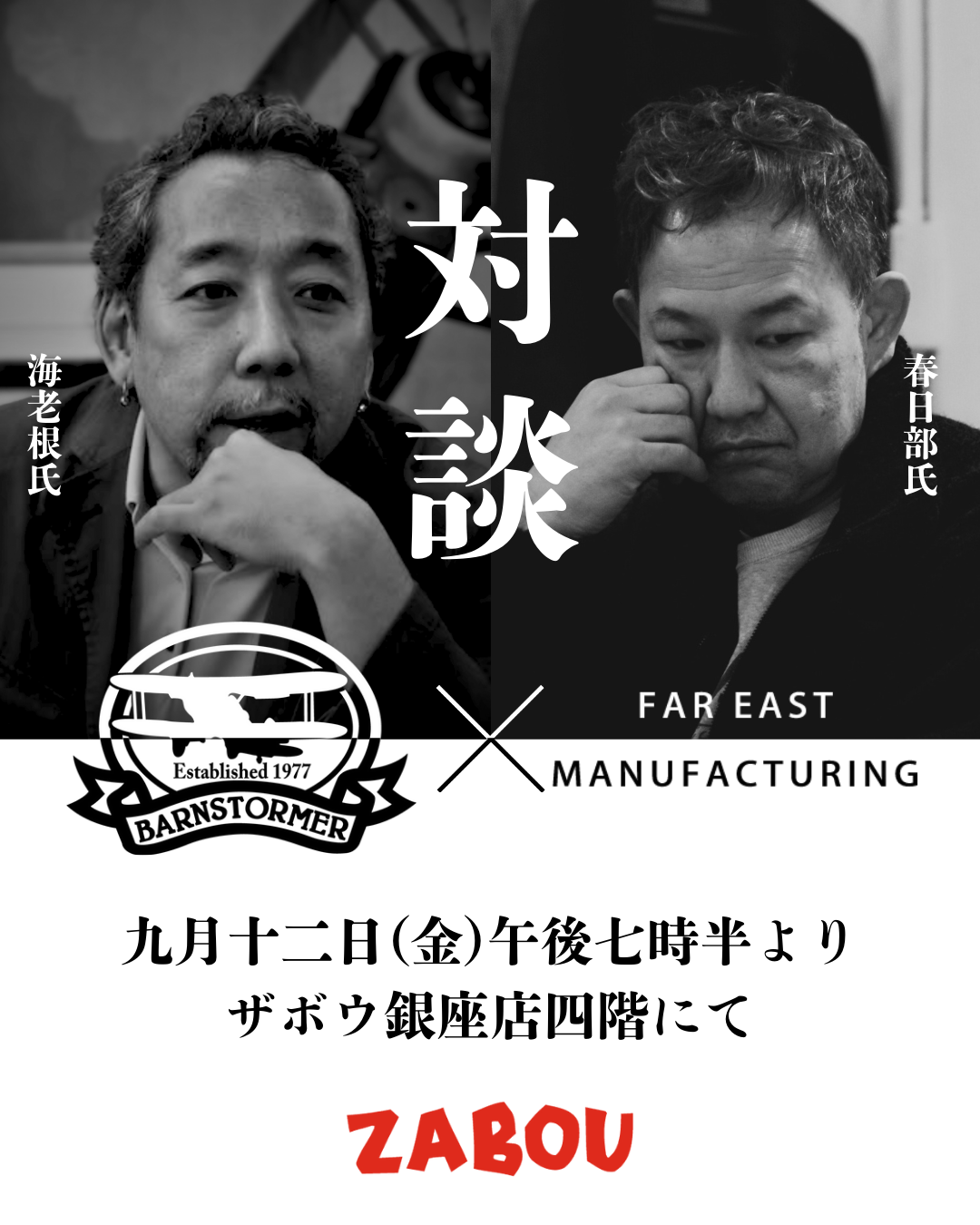 2025.08.31#Blogイベントのお知らせ 『BARNSTORMER(バーンストーマー)&FAR EAST MANUFACTURING(ファー イースト マニュファクチャリング)新作お披露目トークイベントinZABOU!』 -